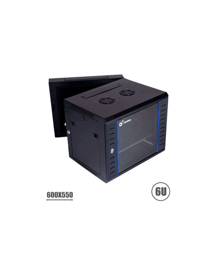 6U, 600x550mm Apertura Trasera, para mayor comodidad de trabajo. Puerta delantera con laterales perforados y cristal de seguridad templado de 4mm. Apertura de seguridad con llave. Mtodo de instalacin sencillo en la pared. Laterales desmontables. Rieles de montaje ajustable. Entrada de cable por parte superior e inferior. Medidas: 600x550x370mm