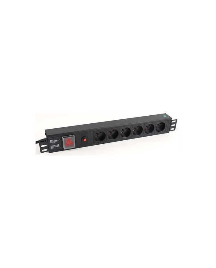 Instalacin horizontal 1U Tomas de salida: 8 x DIN49440 Longitud del cable: 1,8 m Corriente: 16A Tensin nominal: 250 V AC, 50/60Hz Potencia mxima: 3500W Encienda el interruptor de encendido / apagado Filtro de proteccin Color: Negro