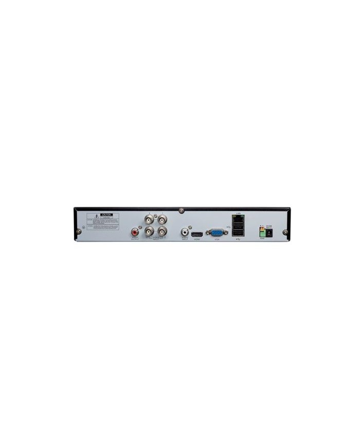 Grabador compatible con cmaras AHD, Analgicas, TVI, CVI e IP Entradas de Video: 4 canales Canales IP: 2 canales (hasta 6 canales IP si no se conectan cmaras analgicas) Entradas de audio: 4 canal (RCA) Salida de audio: 1 canal (RCA) PTZ (RS485): si Compresin de video: H.264 / H.265 Resolucin de grabacin y visualizacin: hasta 5MP Disco duro: 1 disco duro hasta 6TB (no incluido) Salida VGA: 1024x768, 1280x1024, 1440x900, 1920x1080 Salida HDMI: 1024x768, 1280x720, 1280x1024, 1440x900, 1920x1080, 2560x1440(2K), 3840x2160(4K) Grabacin: contnua, manual y deteccin de movimiento. Puertos USB: 2 (1xUSB2.0 frontal, 1xUSB2.0 trasero) Ancho de banda entrada: 4Mbps - 24Mbps Ancho de banda salida: