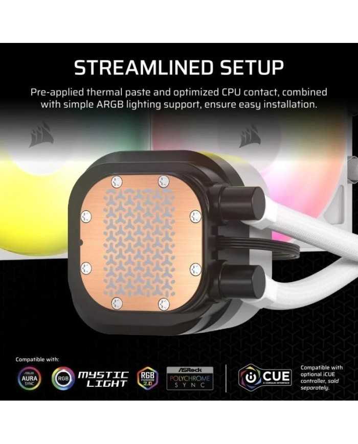 - LISTO PARA iCUE.Conctelo a un controlador CORSAIR iCUE como el COMMANDER CORE XT (controlador y cable adaptador de venta por separado) para obtener un control ms avanzado de los ventiladores y la bomba mediante el software iCUE.