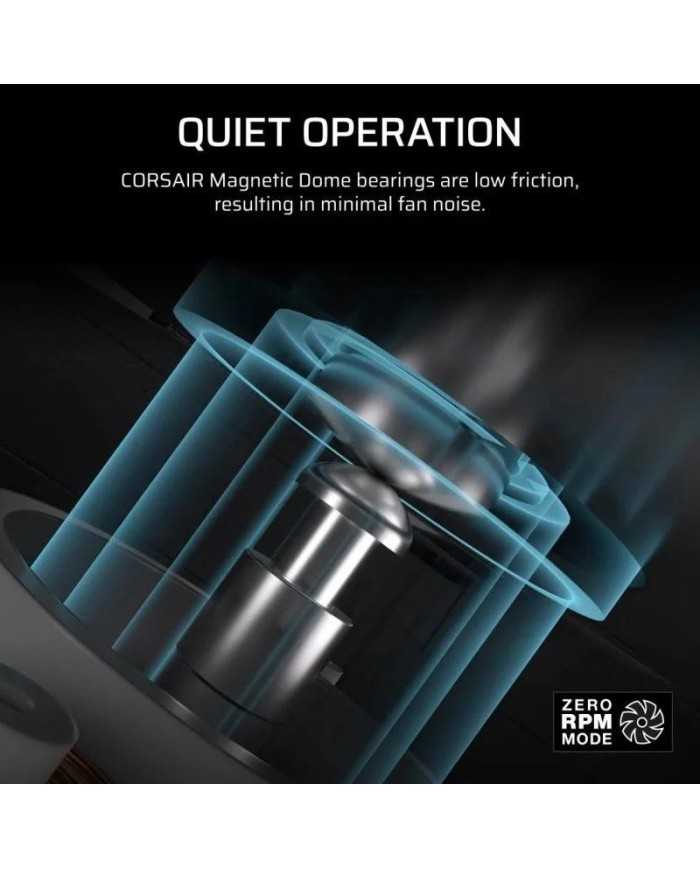 - ALTO FLUJO DE AIRE? Y PRESIN?ESTTICA. Los ventiladores RS120 brindan un potente flujo de aire con alta presin esttica para impulsar el aire a travs del radiador. La tecnologa CORSAIR AirGuide y los rodamientos de cpula magntica garantizan un excelente rendimiento de refrigeracin manteniendo el ruido al mnimo. _x000D_