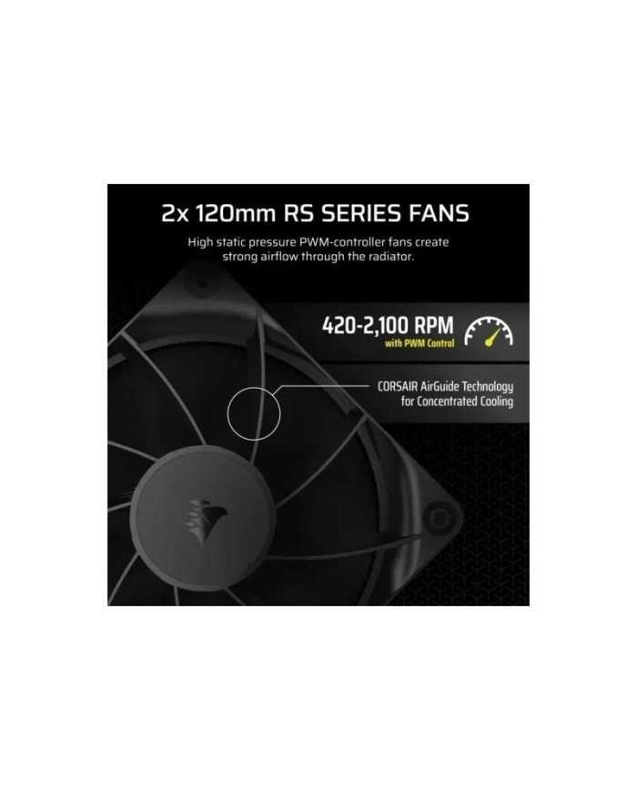 - ALTO FLUJO DE AIRE? Y PRESIN?ESTTICA. Los ventiladores RS120 brindan un potente flujo de aire con alta presin esttica para impulsar el aire a travs del radiador. La tecnologa CORSAIR AirGuide y los rodamientos de cpula magntica garantizan un excelente rendimiento de refrigeracin manteniendo el ruido al mnimo. _x000D_