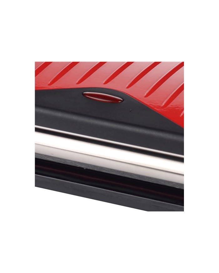 - Placas antiadherentes con formato liso. - Placa superior basculante - Presión uniforme - Asa tacto frio. - Fácil limpieza - Zona superior con acabado Inox. - 750W - Medida de las placas: 23 x 14.5 cm - Color rojo - 6 unidades por caja
