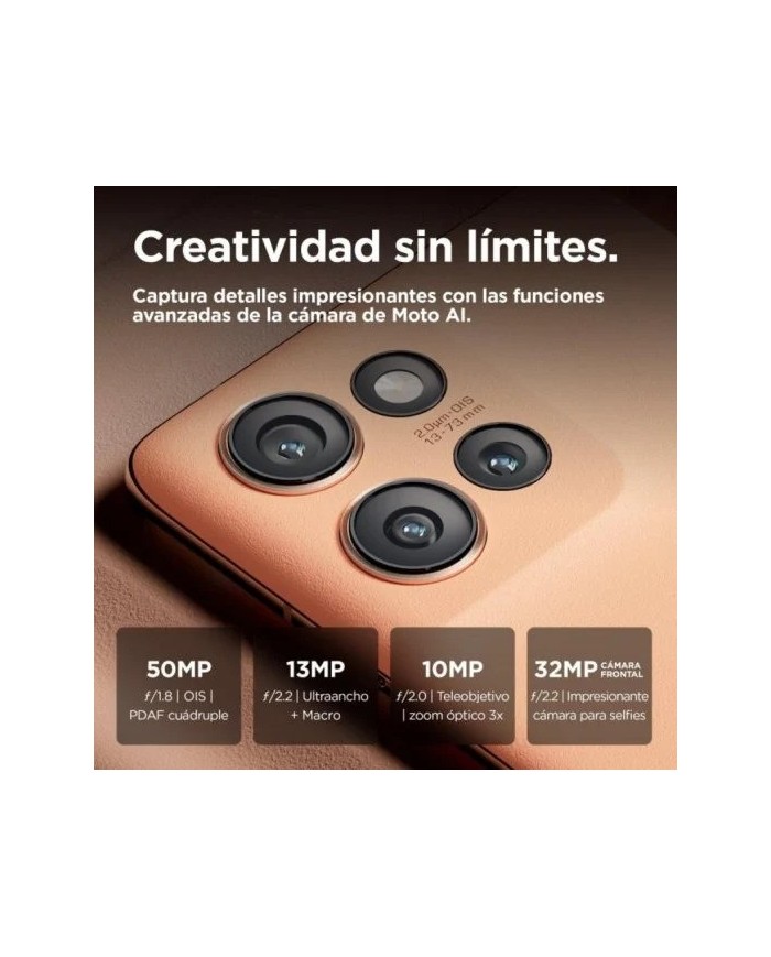 Cámara triple avanzada con IA. El sensor Sony LYTIA 700C de 50 MP con OIS, junto a un ultra gran angular de 13 MP y teleobjetivo de 10 MP, te permite capturar detalles, colores y movimiento con nivel profesional. Graba vídeo 4K y aprovecha modos como HDR automático, macro y night mode. La cámara frontal de 32 MP satisface a creadores de contenido o streamers más exigentes.