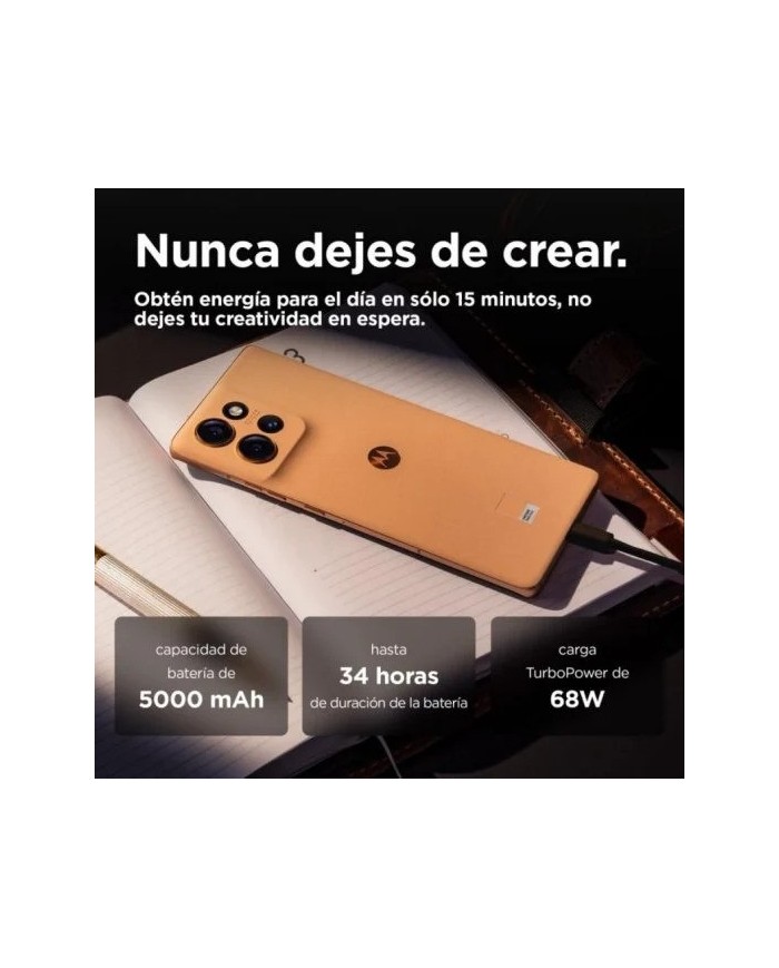 Batería de 5000 mAh y carga TurboPower™ 68 W. Graba, juega y trabaja todo el día gracias a una autonomía sobresaliente y recarga ultrarrápida. Cuenta además con carga inalámbrica para mantenerte productivo con flexibilidad.