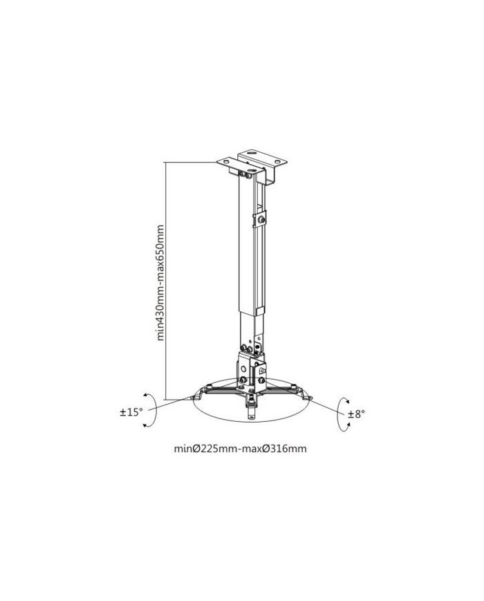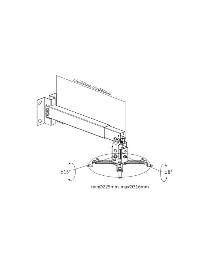 • Para uso en techo o pared • Soporta hasta 20Kg • Altura regulable 35cm a 56cm • Inclinacion +-15º
