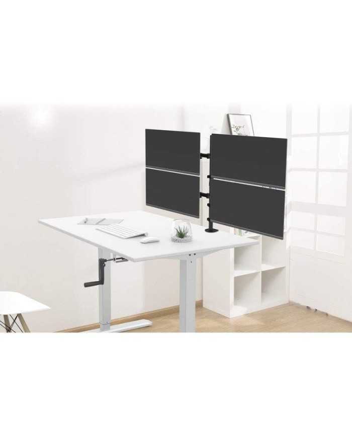 - Soporte de metal para 4 monitores de hasta 32 pulgadas y 8 kg cada uno.