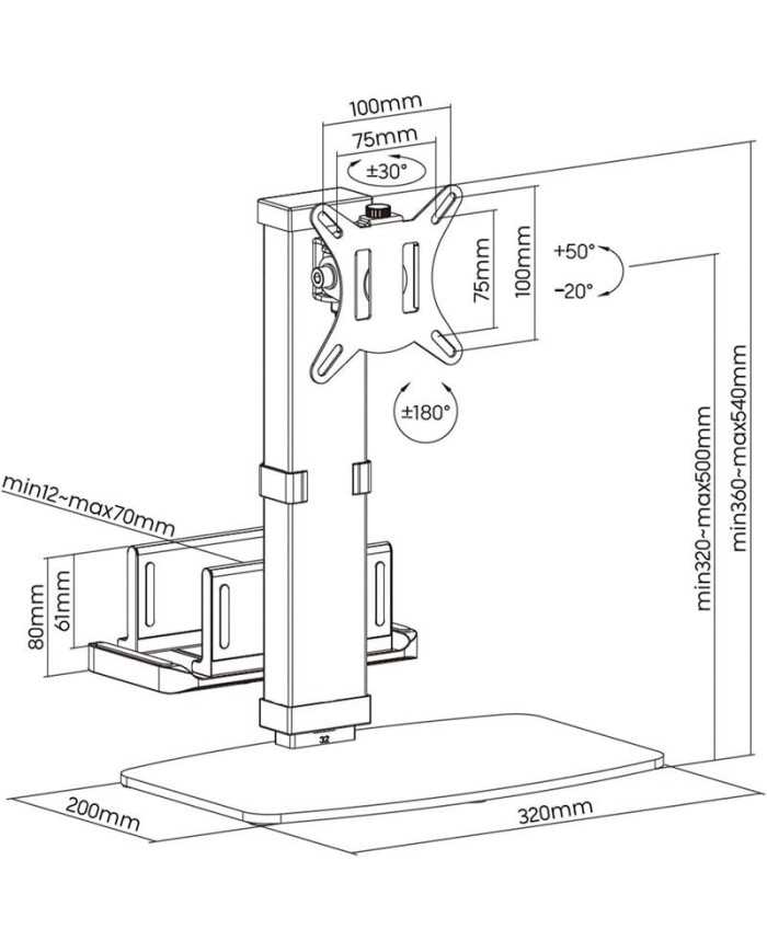 Soporte de mesa Eco Aisens giratorio e inclinable para monitor/TV y mini PC de 17?-32? con estilo sobremesa, no se necesita anclar el soporte en el tablero de la mesa. Fabricado con acero de alta resistencia y pintado con pintura electrostática para un acabado perfecto. Destacamos su fácil instalación y ajuste, muy cómodo para el uso diario.