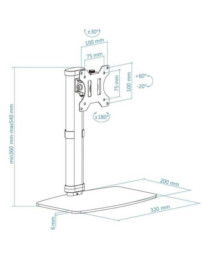 - Rango de ajuste para la altura del soporte: 360-540 mm.
