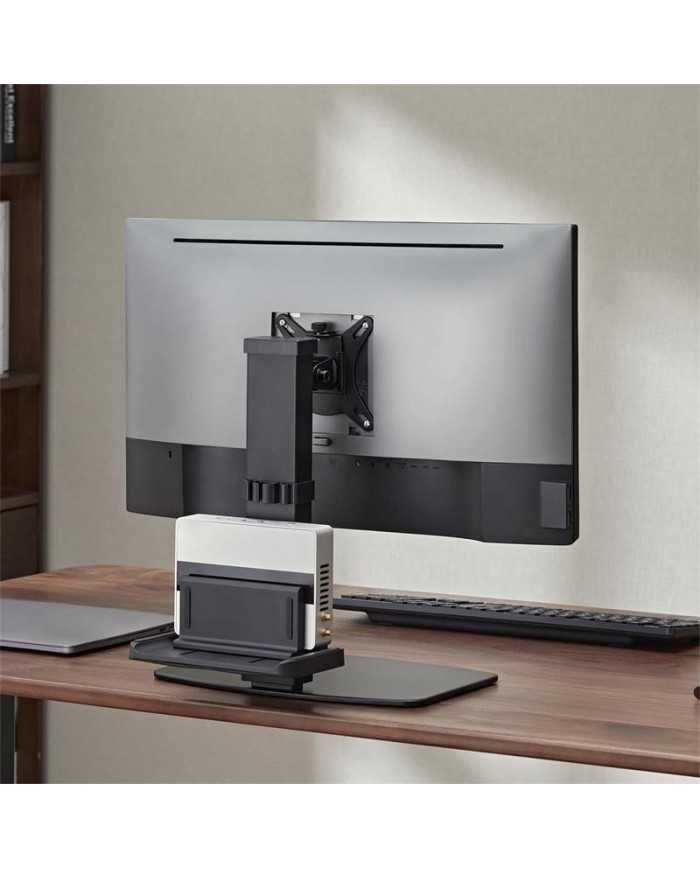 - Este soporte para monitor cuenta con una característica adicional que lo hace aún más práctico: un soporte para mini PC en su parte posterior. De esta manera, no solo podremos elevar la pantalla a una altura cómoda, sino que también tendremos más espacio libre en nuestra mesa para trabajar de manera más eficiente. ¡Es una forma práctica y ordenada de mejorar nuestro espacio de trabajo!