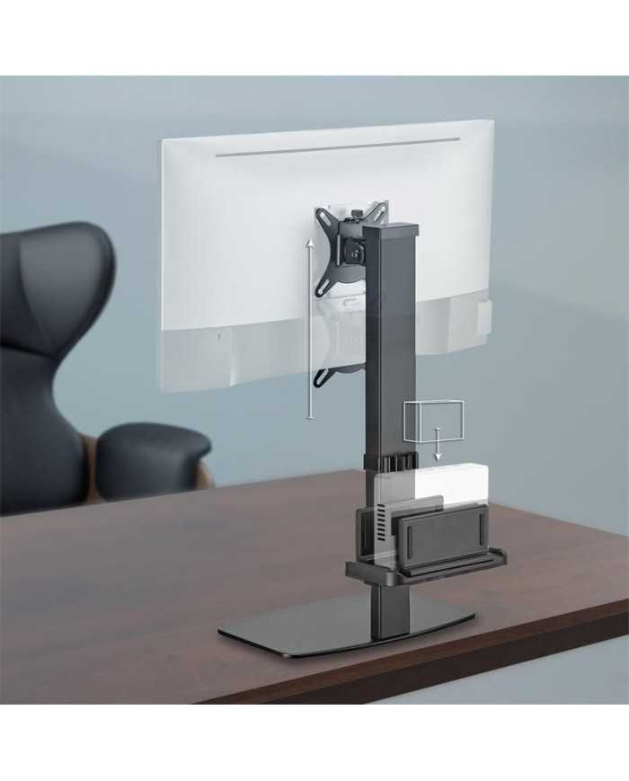 Soporte de mesa Eco Aisens giratorio e inclinable para monitor/TV y mini PC de 17?-32? con estilo sobremesa, no se necesita anclar el soporte en el tablero de la mesa. Fabricado con acero de alta resistencia y pintado con pintura electrostática para un acabado perfecto. Destacamos su fácil instalación y ajuste, muy cómodo para el uso diario.