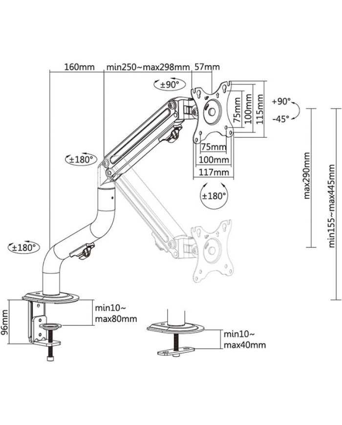 - Rango de ajustes de altura: 155 - 445 mm _x000D_