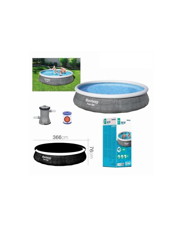 Fast Set es la nueva lnea de piscinas elevadas de la marca Bestway diseada para permitir a las familias una instalacin increblemente rpida y sencilla de la piscina elevada: para configurar completamente la estructura y refrescarse en su jardn, simplemente infle el anillo en la parte superior. del revestimiento y llene la tina con agua. La estructura se levantar por s sola permaneciendo en posicin vertical sin necesidad de soportes adicionales y en menos de 10 minutos tendrs tu piscina exclusiva lista para usar! La estructura de la piscina se hace autoportante gracias a la tecnologa especial del anillo superior que garantiza no solo un montaje rpido sino tambin la mxima seguridad para los nios. Especialmente indicada para quienes desean un produ