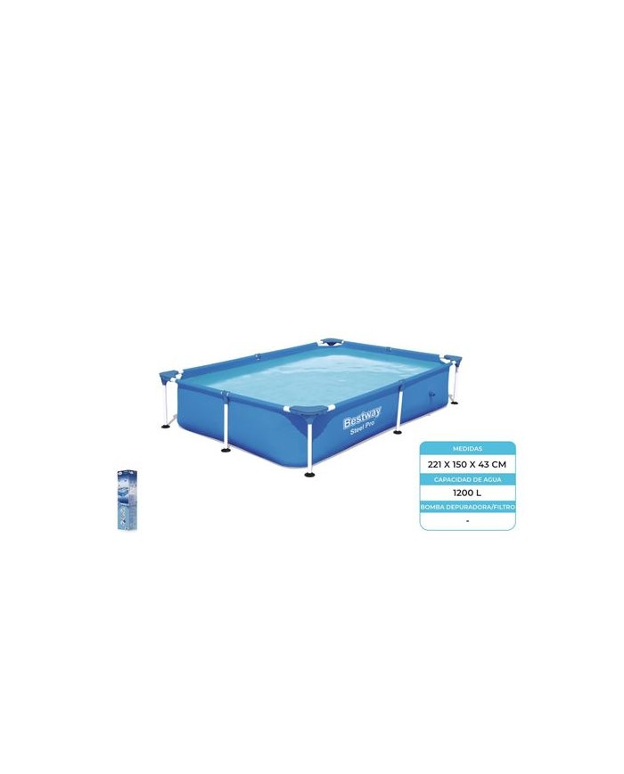 Dimensiones: 2,21 m x 1,50 m x 43 cm. Capacidad de Agua (90%): 1200 L. El revestimiento DuraPlus mejorado de 3 capas es duradero y resistente a los pinchazos. El marco de acero resistente a la corrosin proporciona una extraordinaria resistencia. Proceso de montaje y desmontaje fcil y sin herramientas. Contenido: 1 piscina.