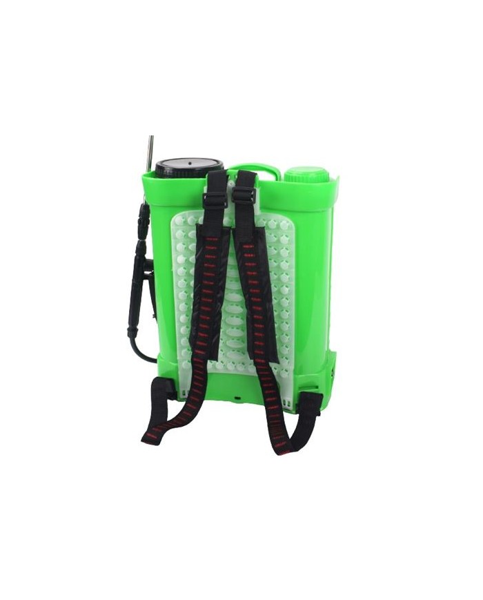 * Capacidad para 16 Litros * Tanque ergonmico con curvatura en la espalda para una ajuste perfecto y cmodo. * Agarre y sujecin a travs de dos correas superiores, una para cada hombro. * Asa superior para el traslado cmodo de la mochila sin necesidad de tener que llevar a la espalda. * Lanza inoxidable con posibilidad de acople de diferentes boquillas * Filtro colador en la parte superior de la mochila para que no entre maleza al depsito y evitar que la lanza se atasque durante su uso * Sulfatadora a batera de 12V y 8A con cargador a la luz * Regulador de la potencia y botn de encendido/apagado para control de la bateraEmbalaje: Altura 48.00 cm Anchura 36.00 cm Longitud 21.00 cm Peso Bruto 7.00 kg Peso Neto 7.00 k