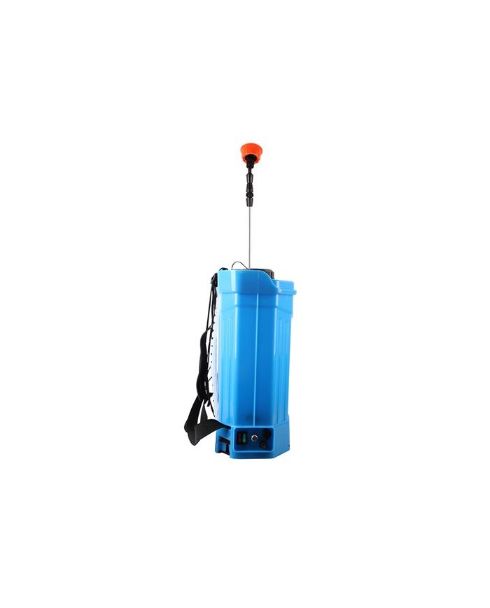 Sulfatadora a batera de 12V y 8A con cargador Capacidad para 20 Litros Tanque ergonmico con curvatura en la espalda para una ajuste perfecto y cmodo. Agarre y sujecin a travs de dos correas superiores, una para cada hombro. Asa superior para el traslado cmodo de la mochila sin necesidad de tener que llevar a la espalda. Lanza inoxidable. Filtro colador en la parte superior de la mochila para que no entre maleza al depsito y evitar que la lanza se atasque durante su uso Regulador de potencia. Rango de presin de trabajo: 0-0.65mpa Rango mximo de presin: 0.65-0.8mpa Tiempo de trabajo: 2 -5 horas Descarga: 0-3 Litros/min Indicador de batera. Dimensiones: 41.2X21.8X47.2cm
