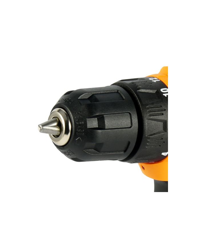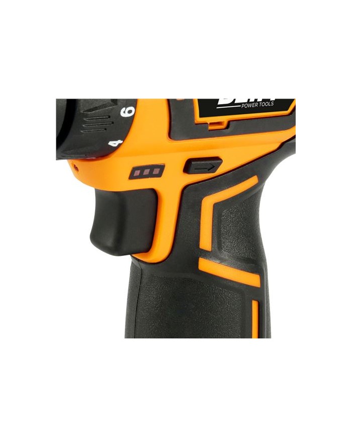 Mango ergonmico Incluye 2 bateras 12V - 2.0 Ah Display y luz LED para iluminar la zona de trabajo. 2 velocidades: 0-400rpm y 0-1500rpm Par mximo: 28Nm. Par de apriete: 18+1 Portabrocas de 10mm sin llave Cargador rpido. Incluye maletin de transporte con accesorios 8 unidades por caja.