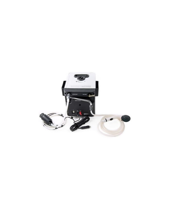 Diseado especialmente para camping y caravanas. Encendido automtico Calienta el agua de forma instantnea Equipado con grifo + ducha con manguera de 2.5 metros. Incluye funda de transporte Conexin 12V (includa) Incorpora mecanismo de proteccin contra sobrecalentamiento. Funciona con botella externa de gas convencional (necesaria) Dimensiones: 25x35x30 cm (ancho x fondo x alto) Peso: 6Kg