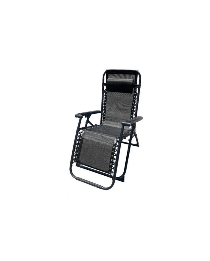 TUMBONA PLEGABLE NEGRO DE ACERO CON COJIN CERVICAL