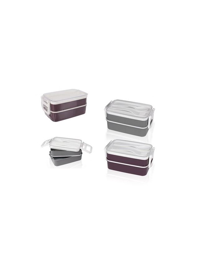 FIAMBRERA PLASTICA CON UTENSILIOS 2 NIVELES 375+475ML THERMOSPORT