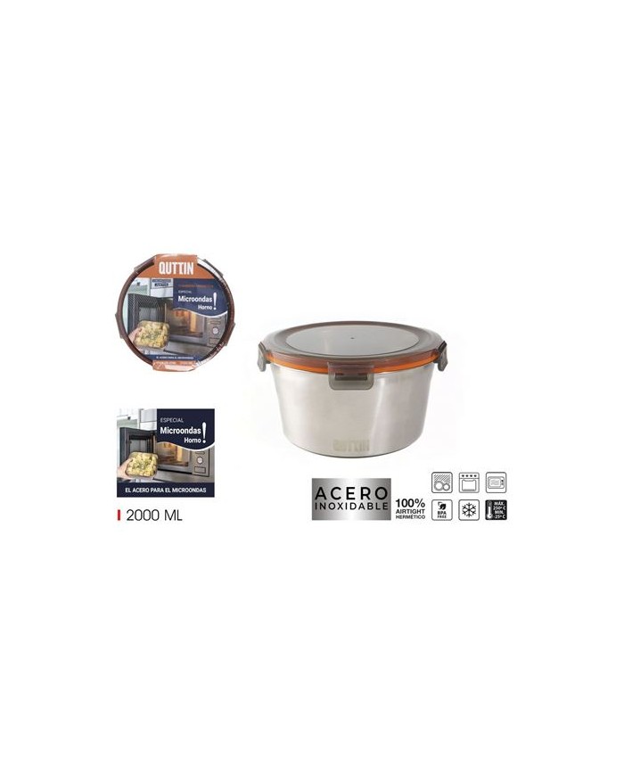 TUPPER ACERO INOXIDABLE 2 LITROS APTO MICROONDAS QUTTIN