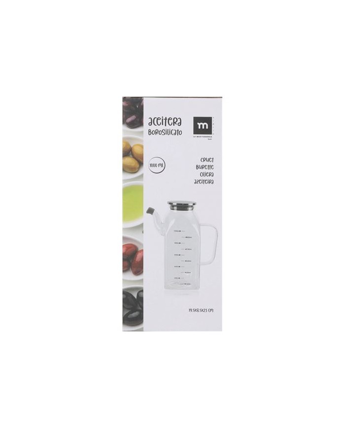 Transparent y con tapa de metal Divisiones 100ml Material Borosilicato Ideal como aceitera o otros liquidos Capacidad 1000ml