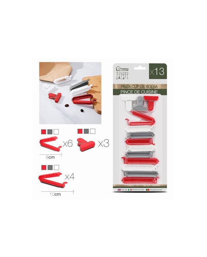 PACK 13 PINZAS DE CIERRE PLASTICO PARA BOLSAS URBAN LIVING