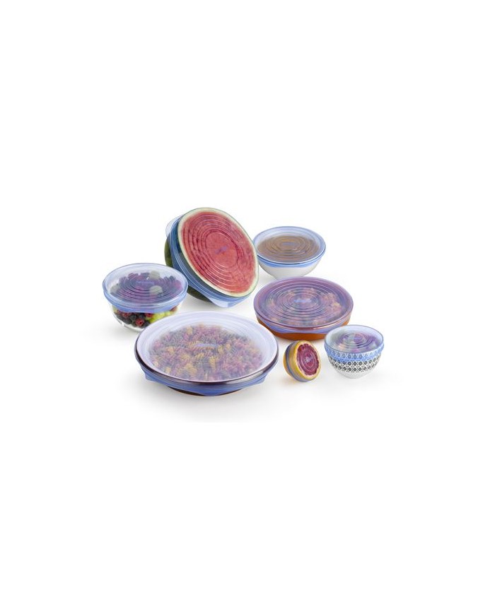it de 10 tapas de silicona reutilizables para alimentos. Flexibles, duraderas y adaptables a varias formas. Apta para horno hasta 220 Puede sellar cualquier recipiente o incluso alimentos.Fcil limpieza y apto para microondas, lavavajillas y congelador. Mantienen los alimentos frescos durante ms tiempo y convierten cualquier cuenco o plato en un recipiente hermtico. Se pueden usar una y otra vez, de manera sostenible para mantener los alimentos frescos y almacenados. Medidas: 6/9/11/14/16/20/24 cm