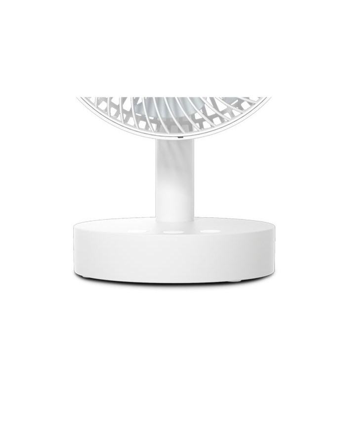 Ventilador plegable. Ocupa muy poco espacio. Funcin de oscilacin hasta 70 Dimetro: 19cm, 8" Altura: 30cm 4 velocidades. Potencia: 12W ngulo ajustable hasta 90 Batera 3600mAh. Tiempo de carga aprox: 6 horas Tiempo de uso: 2 - 11 horas. Incluye cable de carga tipo C.