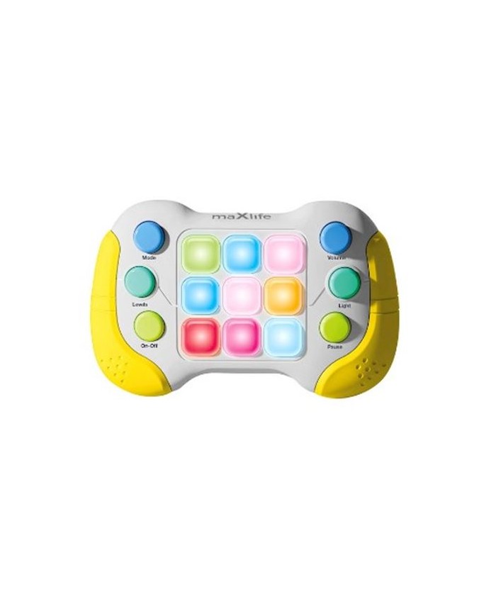 El Maxlife MXPS-300 es un juego de destreza Pop It porttil con un carcter dinmico. Permite desarrollar reflejos, memoria y coordinacin mano-ojo, ofreciendo una jugabilidad atractiva en cualquier momento libre. Con su tamao compacto, cabe en tu mano y est listo para jugar en cualquier lugar, en casa, de viaje, en la escuela o en la oficina.Diversos modos de juego y desafiantes retosEl dispositivo ofrece modos separados: Whack-a-Mole, Modo Memoria, Modo Msica y Modo Persecucin. Cada uno proporciona un tipo diferente de desafo, desde memorizar secuencias de luces hasta reaccionar a velocidades de juego cambiantes. Los niveles de dificultad integrados permiten ajustar el ritmo del juego segn la edad y experiencia del jugador.Efectos de lu