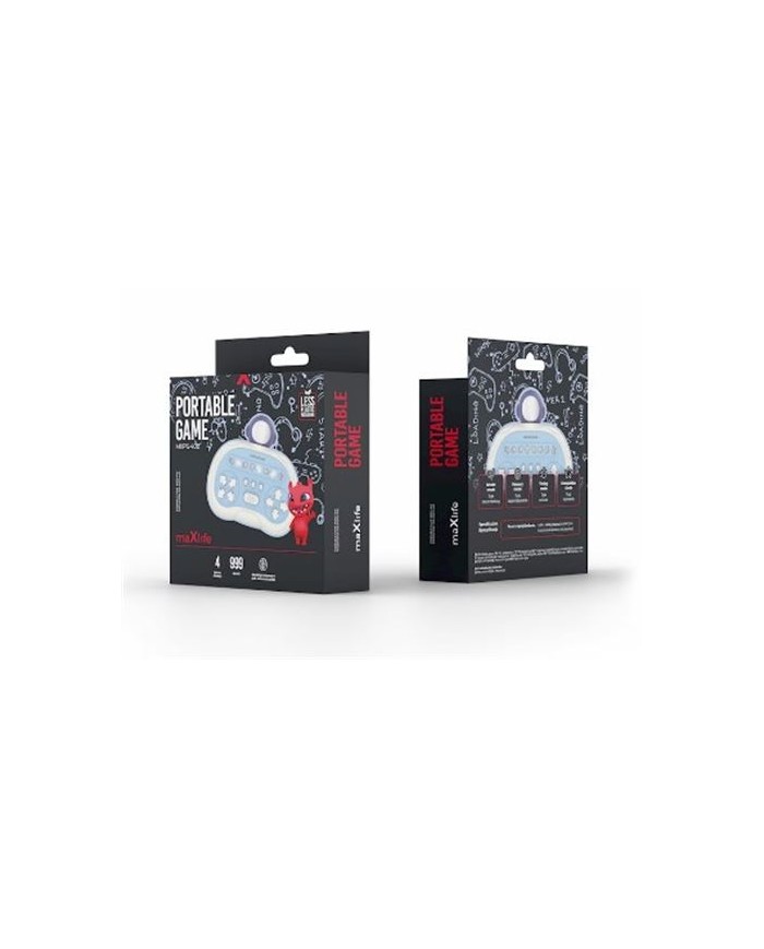 Maxlife MXPS-400 es un juego de habilidad electrnico con un diseo compacto y mecnica dinmica. El dispositivo apoya el desarrollo de reflejos, concentracin y coordinacin mano-ojo, mientras ofrece una jugabilidad atractiva en cuatro modos variados. Gracias a su formato porttil, el juego es adecuado tanto para casa como para viajar.Diseo espacial y distintiva cabeza de astronautaUna caracterstica clave del modelo MXPS-400 es la llamativa cabeza de astronauta ubicada en la parte superior de la carcasa. Este elemento capta la atencin y le da al dispositivo una apariencia moderna y futurista infantil. Los colores brillantes y la forma ergonmica aseguran que el juego se ajuste bien en las manos y sea estticamente atractivo para los usuarios ms jvenes.<