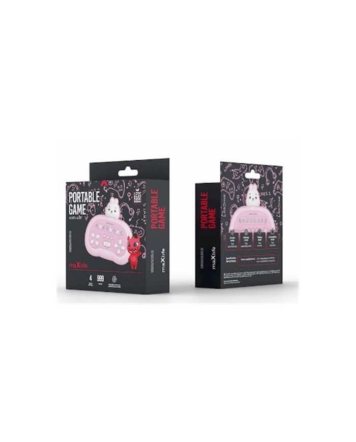 El Maxlife MXPS-400 es un juego de habilidad compacto diseado para una diversin activa y de desarrollo. El dispositivo apoya los reflejos, la concentracin y la coordinacin mano-ojo a travs de un juego dinmico en cuatro modos con diferentes niveles de dificultad. Su diseo prctico permite jugar en cualquier lugar: en casa, en movimiento, o durante los recreos en la escuela.Diseo encantador con un conejoLa carcasa rosa est realzada con una cara de conejo distintiva que le da al dispositivo un carcter amigable y juguetn. Los detalles grficos y una forma suavemente redondeada hacen que el producto sea visualmente atractivo y particularmente querido por los nios ms pequeos. Su forma compacta se adapta perfectamente a la mano, aumentando la facilidad