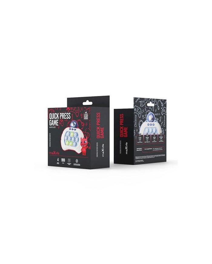 El juego porttil Maxlife PopIt MXPS-100 es un juego de arcade que ayuda a mejorar la memoria y la concentracin. Equipado con cuatro modos de juego y 999 niveles, proporciona entretenimiento relajante y desestresante para los jugadores ms jvenes. El juego consiste en presionar burbujas en el momento adecuado, lo que desarrolla la imaginacin, la creatividad, as como las habilidades de concentracin y destreza. Ofrece diversas experiencias sensoriales a travs de la presin de botones, con un compromiso adicional de efectos de sonido y luz.