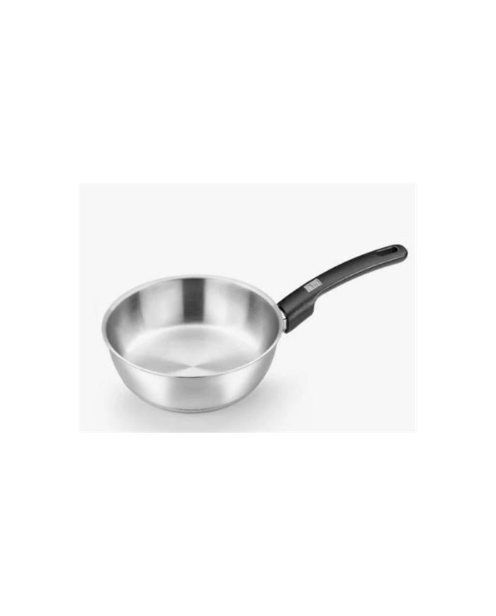 Fabricado en acero inoxidable 18/10. Fondo difusor de aluminio de 4,5mm. Espesor total del fondo de 5,7mm. Mango de baquelita de nuevo diseo color negro. Compatible con todas las fuentes de calor, incluida induccin.