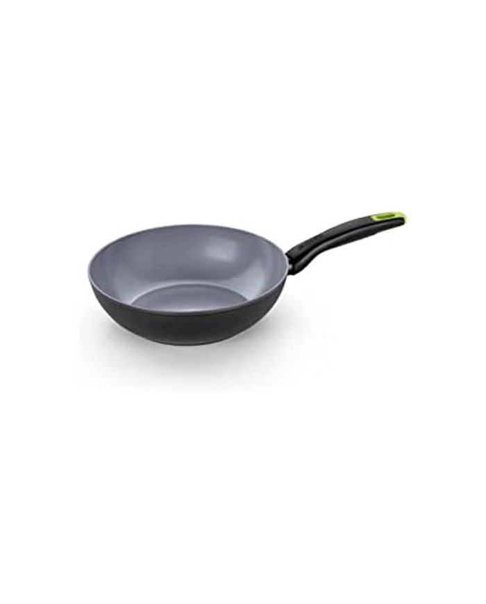 Wok antiadherente bicapa libre de PFOA Mango termoresistente, ergonomico y facil de apilar Apta para lavavajillas Apta para todo tipo de cocinas incluida la induccion Espesor de la base 4mm